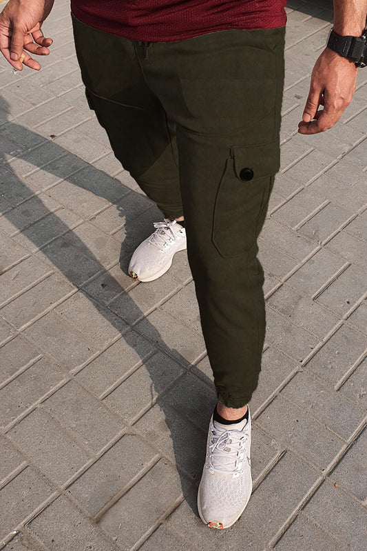 6 Pocket Cargo Trouser Fleece fabric-Solider Green