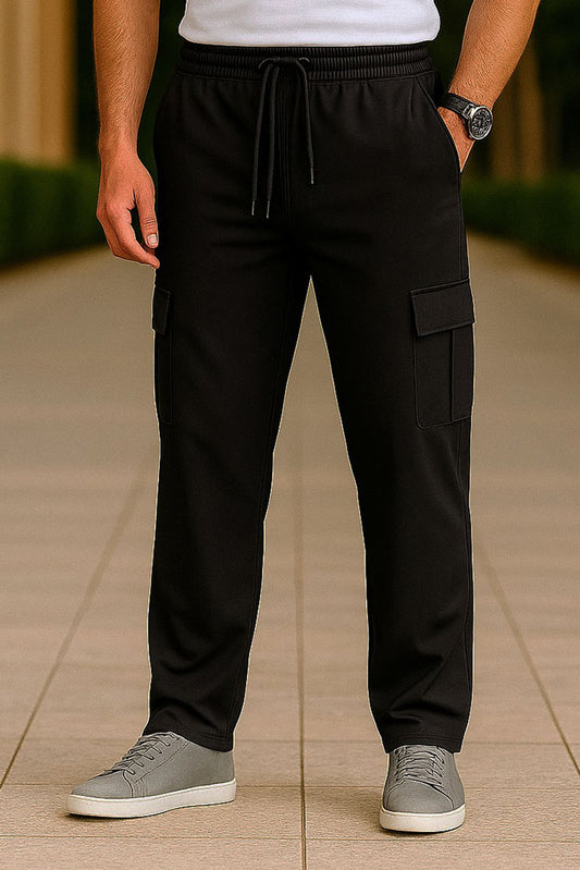 6 Pocket Cargo Trouser Fleece Fabric-Black